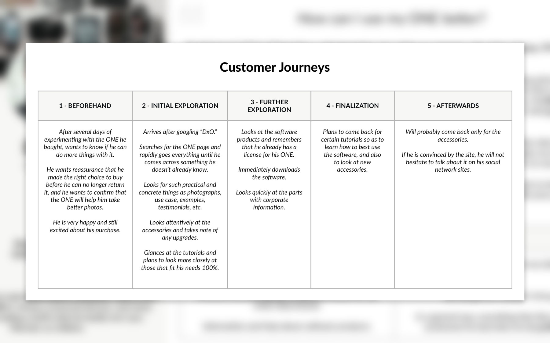 After this study, I've created the different screens of version 1.0 of the interface, that I tested with our beta testers community by choosing the closest profiles to our personas. Since the company has many professional photographers within its ranks, I also took the opportunity to do guerrilla testing in the office and during each Sprint Review, which allowed the other poles not working on the DxO ONE to be aware of what is being done in the company.